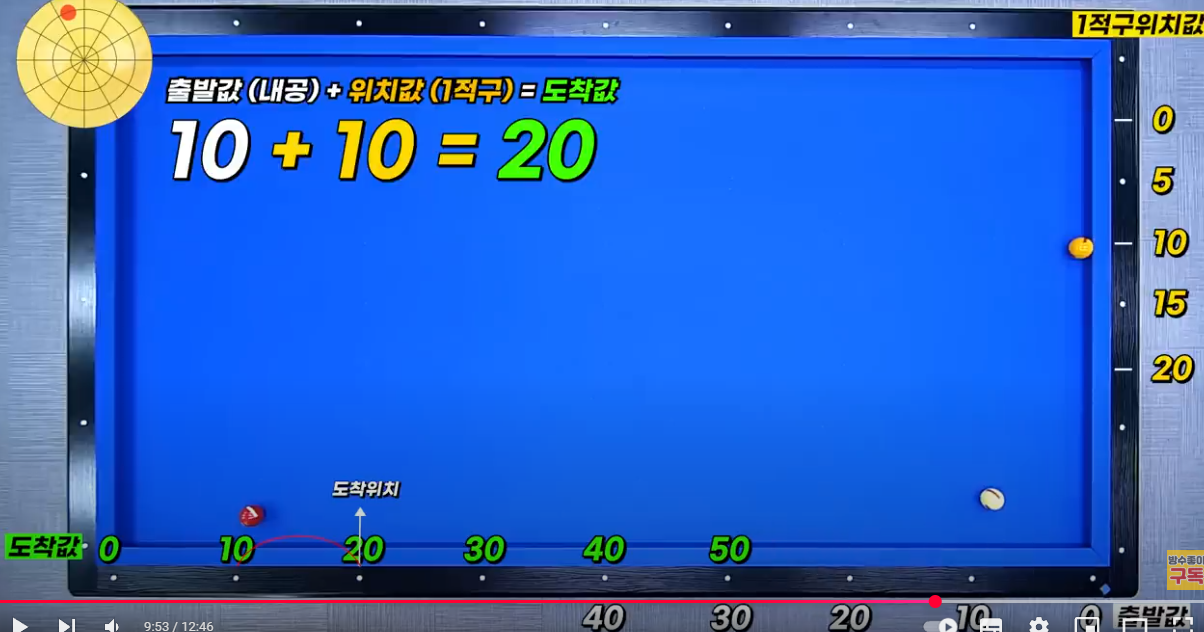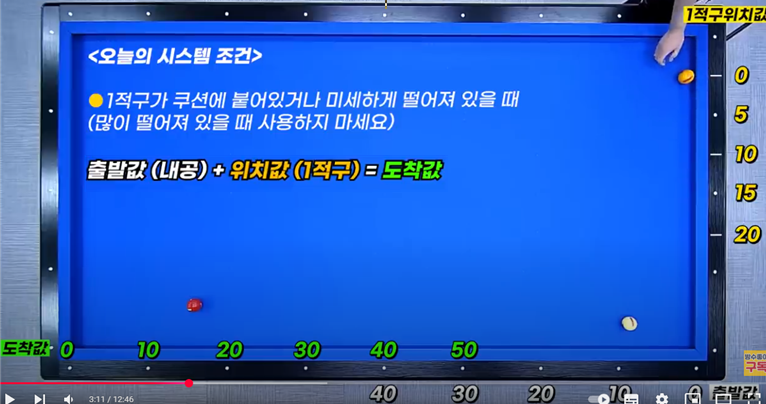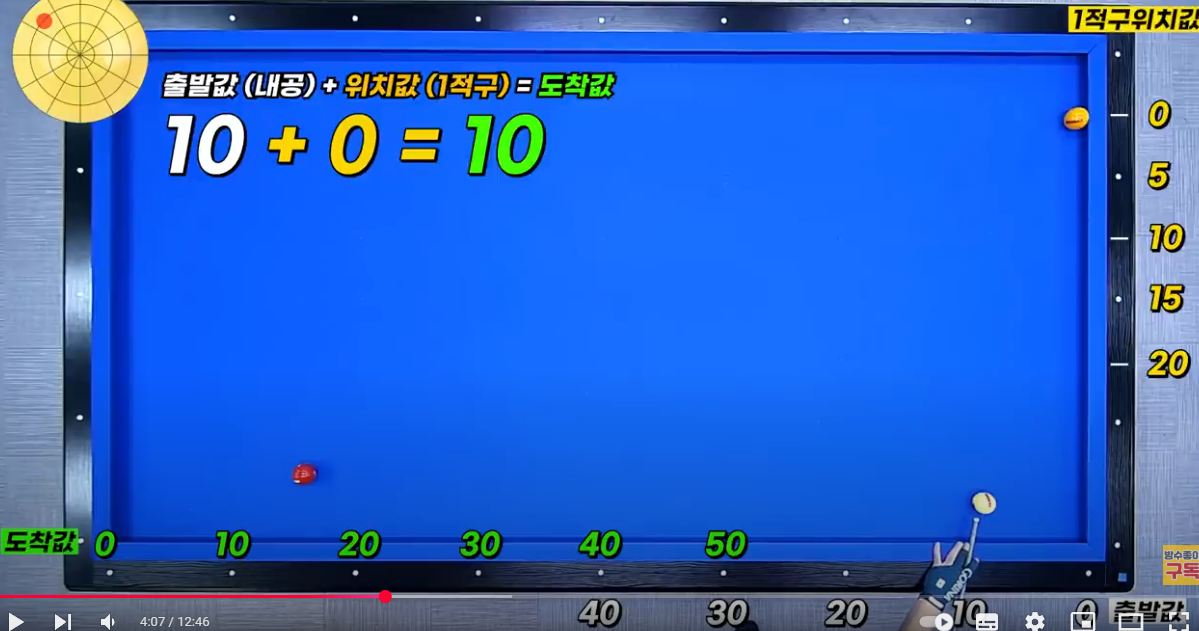 4-2) 4쿠션수 10을 줄어들 때 : 당점 중상단1팁(더 이상을 어렵습니다)