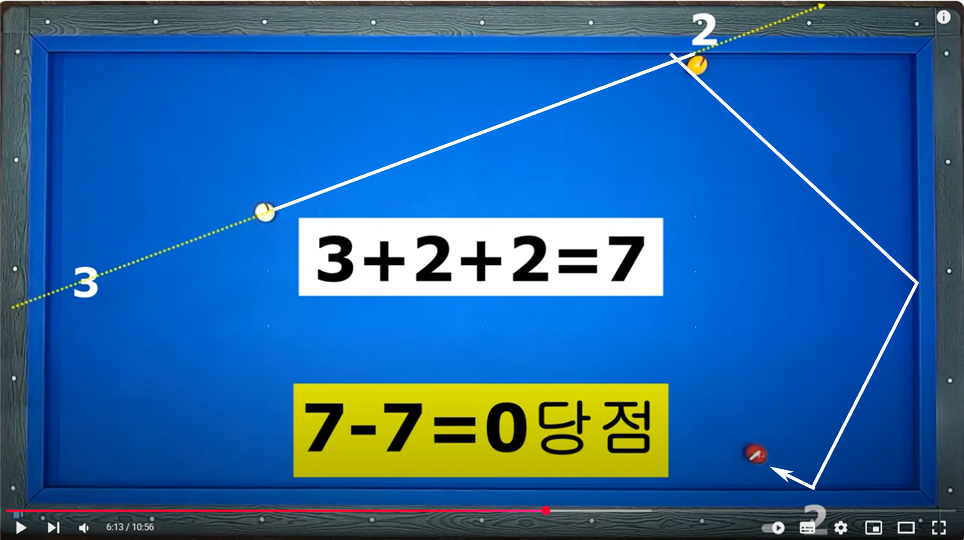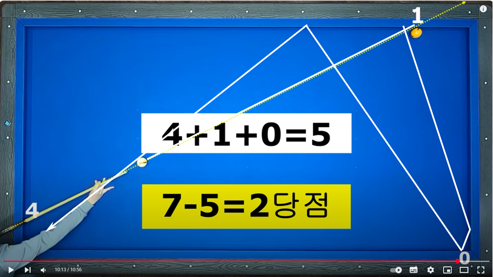 당점 : 7- (큐볼의 기울기 + 1목적구위치값 + 2목적구 위치값)을 의합니다