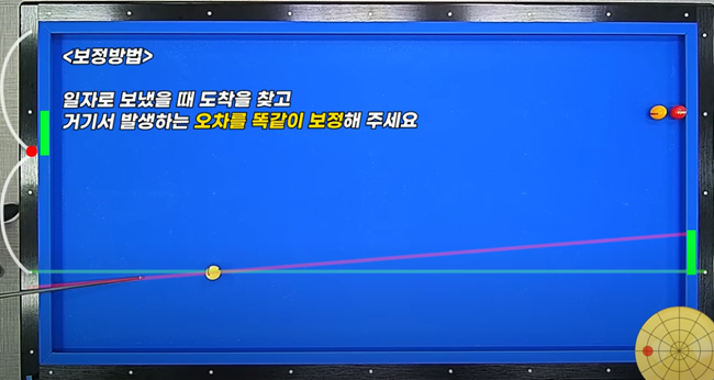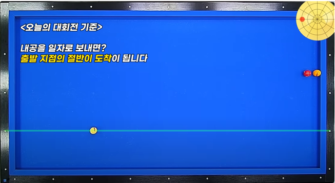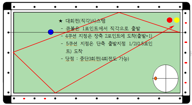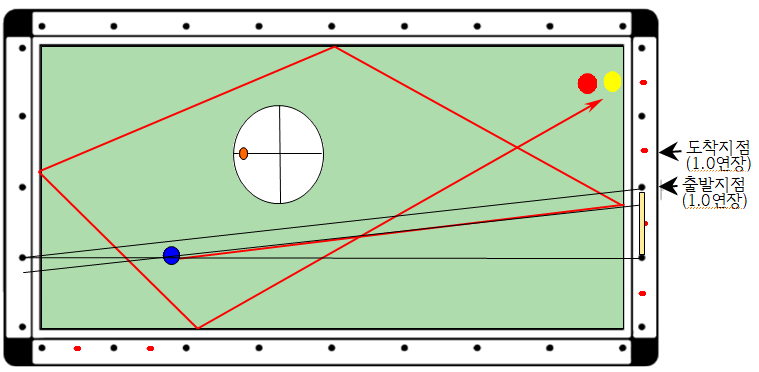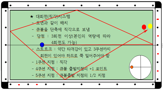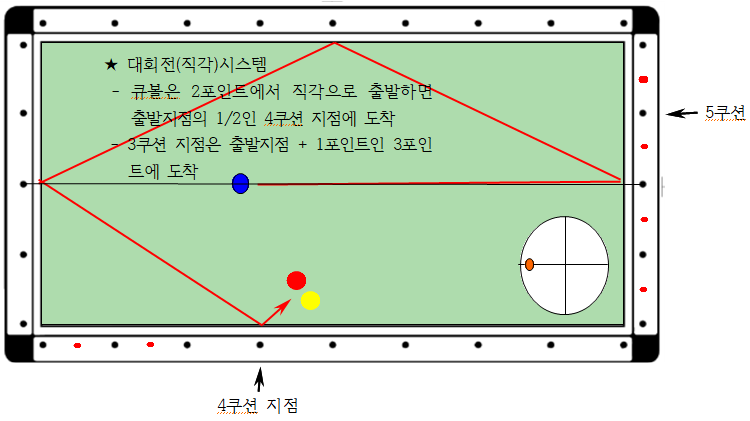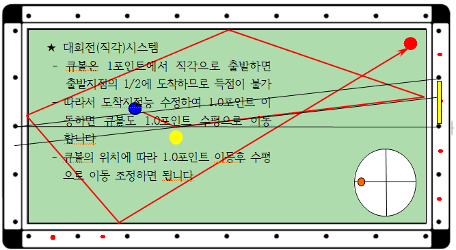 - 큐볼을 단축에 1쿠션으로 직각으로 보내는 시스템입니다