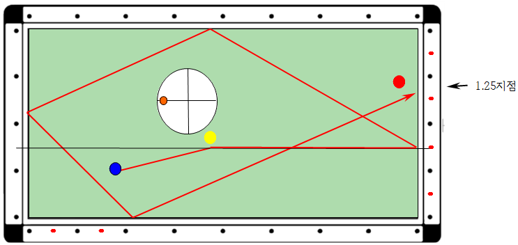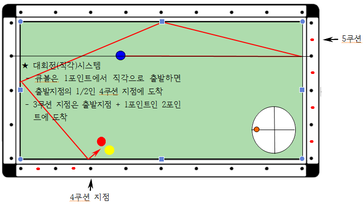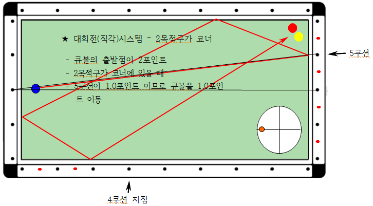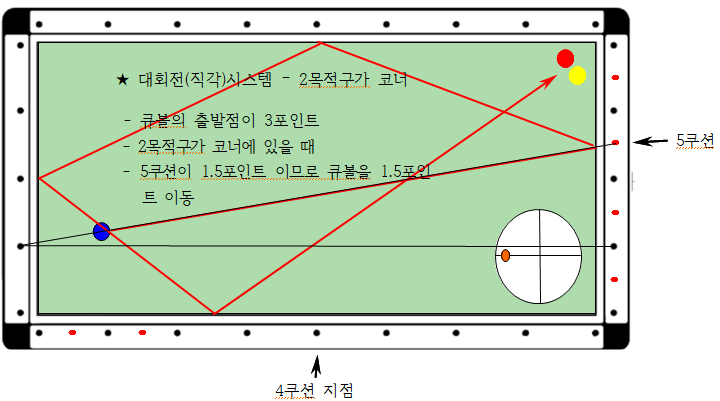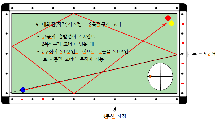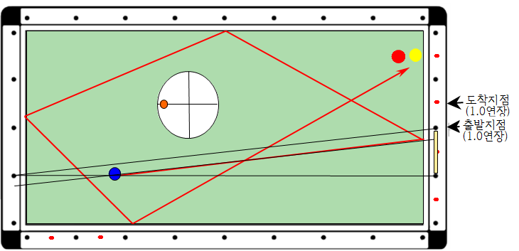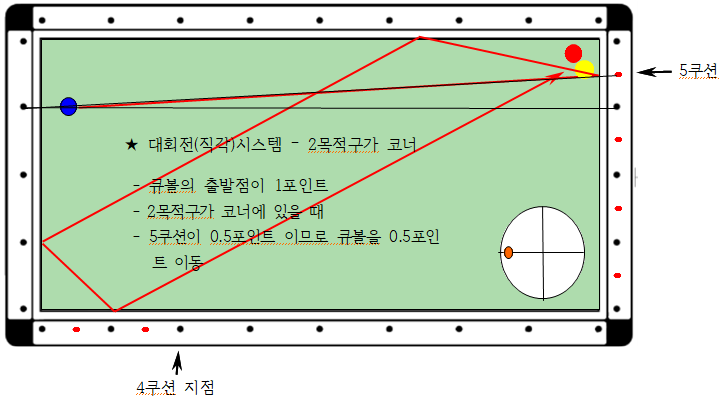 - 4쿠션 지점 : 큐볼 출발지점의 +1 포인트
