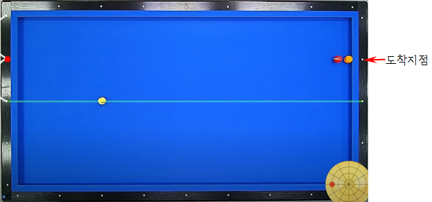 - 따라서 도착지점을 0.5포인트 이동하려면 큐볼도 단축 0.5포인트 수평으로 이동 합니다