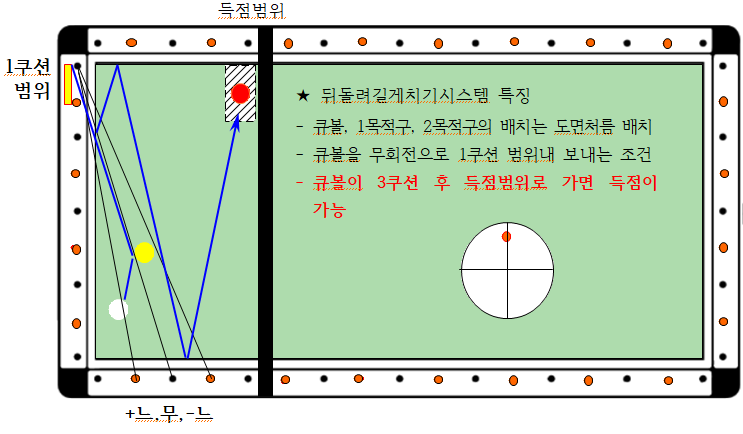 - 큐볼이 3쿠션 후 득점범위로 가면 득점이 가능