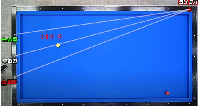 - 큐볼을 무회전으로 1쿠션 범위 내 보내는 조건