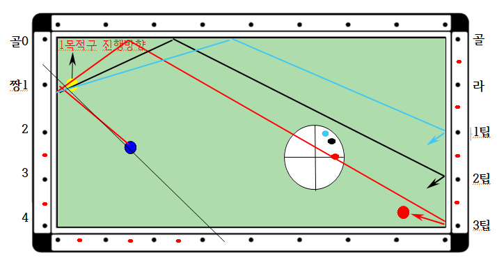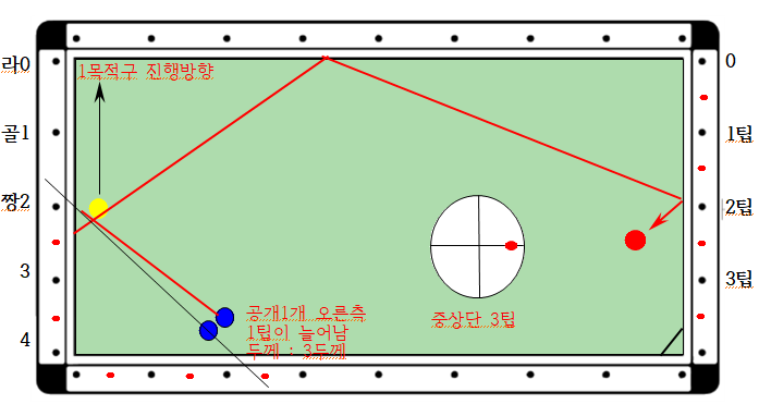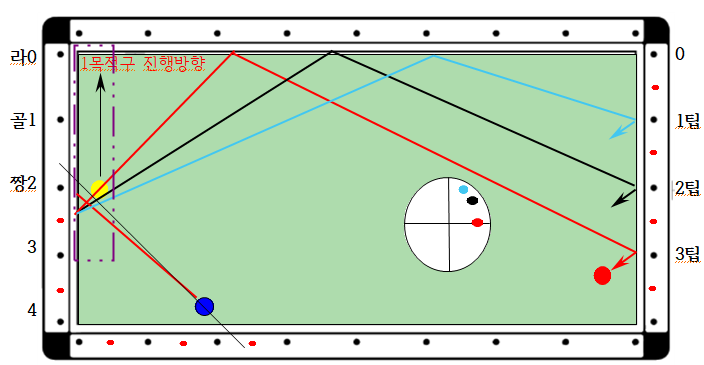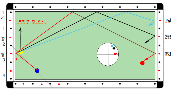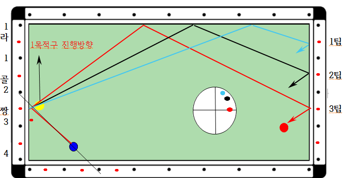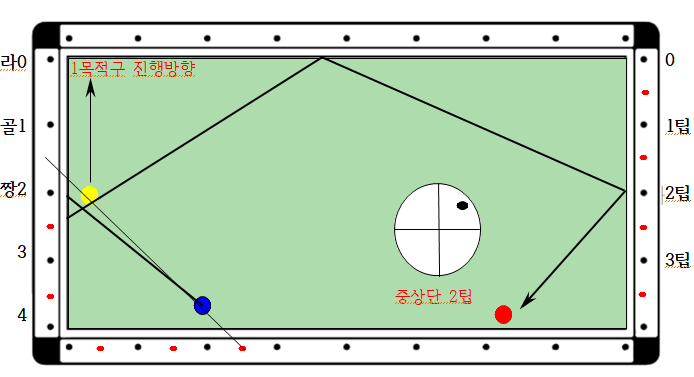- 2목적구는 짱골라123으로 읽고 큐볼의 회전수를 결정 함