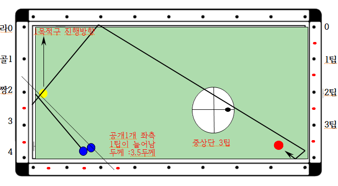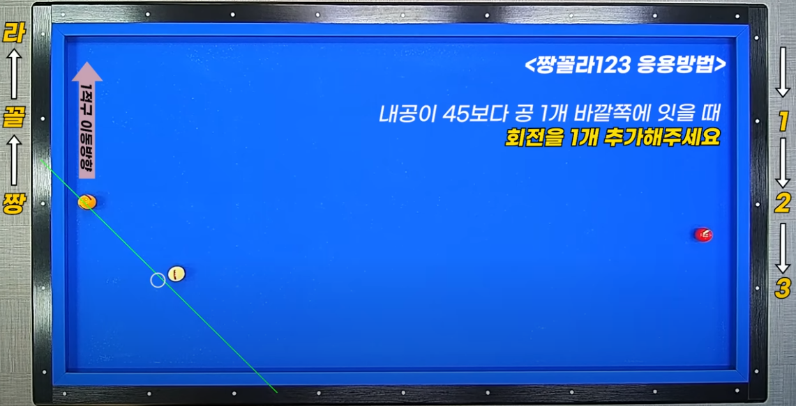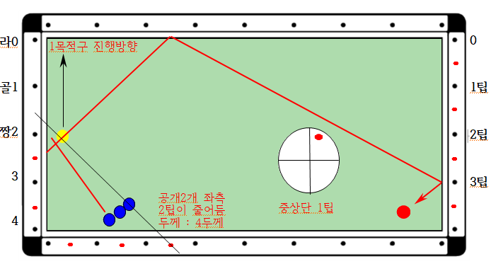- 짱골라123을 외우고 두께는 1목적구가 단축과 수평으로 움직이는 두께