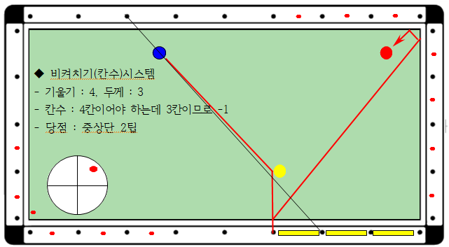 - 검토 : 기울기4가 4칸 진행하여야 하고, 2목적구가 3칸이므로 1칸이 부족합니다