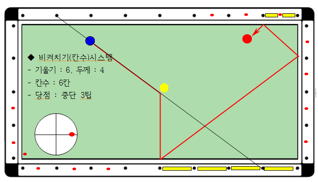 - 검토 : 기울기6이 6칸 진행하여야 하고, 2목적구가 6칸이므로 동일 합니다