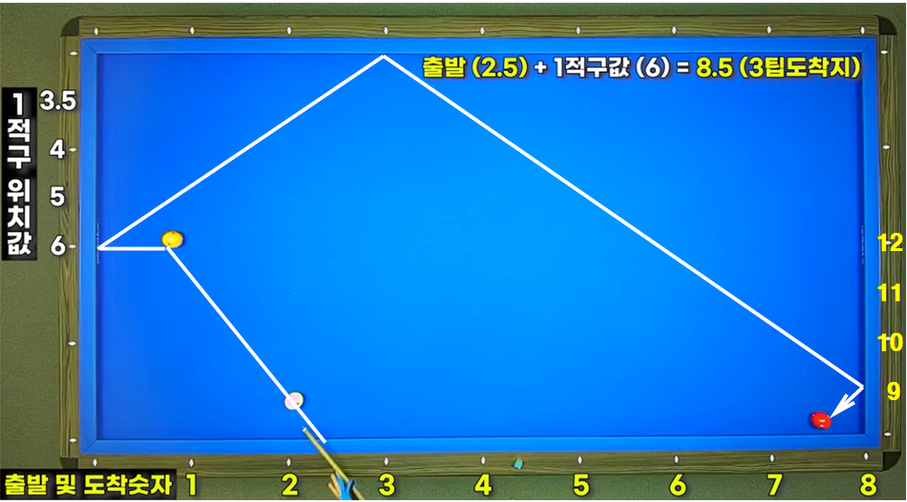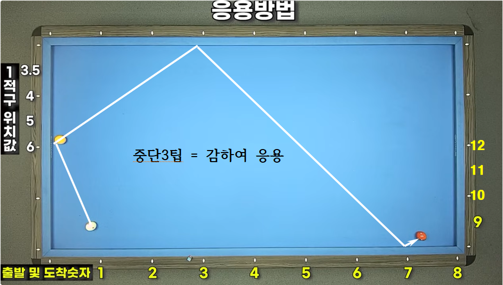 그리고, 이론적인 바탕이 된 ""필승당구"" 유튜브를 소개하오니 필요시 유튜브를 보시고 이해하신 후 기억이 안 날 때는 도면만 봐도 이해할 수 있으니 많이 이용하시기 바랍니다.