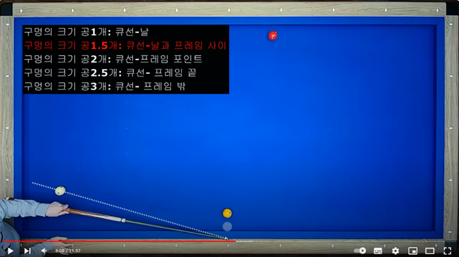 - 실제로 당구장에서 큐볼을 보내보니 가장 이상적이었습니다. 즉 기울기(각도)에 따라 조준점이 달라지므로 가장 바람직하였습니다