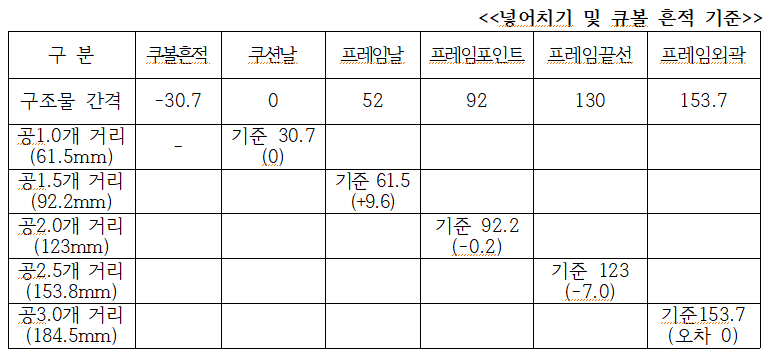 3) 각 위치별 간격(단위 mm)