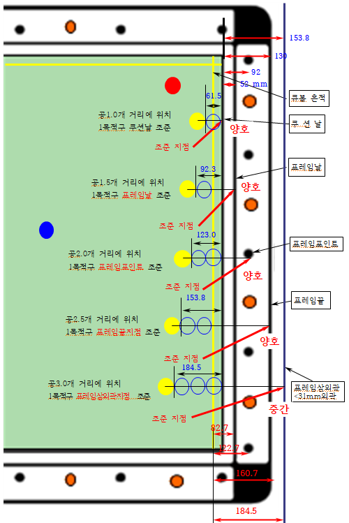 - 두껍게 치는 방식 : 당초 조준점보다 10mm 외부쪽을 겨낭하면 됩니다.