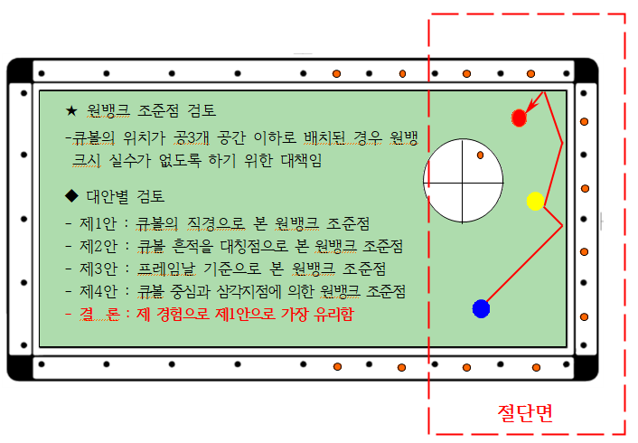 - 제1안 : 큐볼의 직경으로 본 원뱅크 조준점