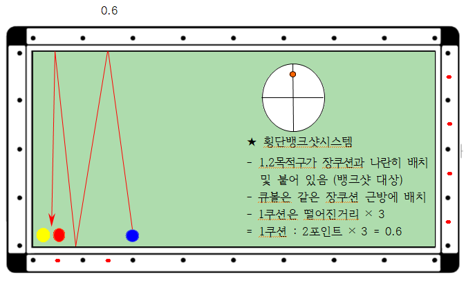 - 1쿠션지점 : 2포인트 × 3 = 0.6
