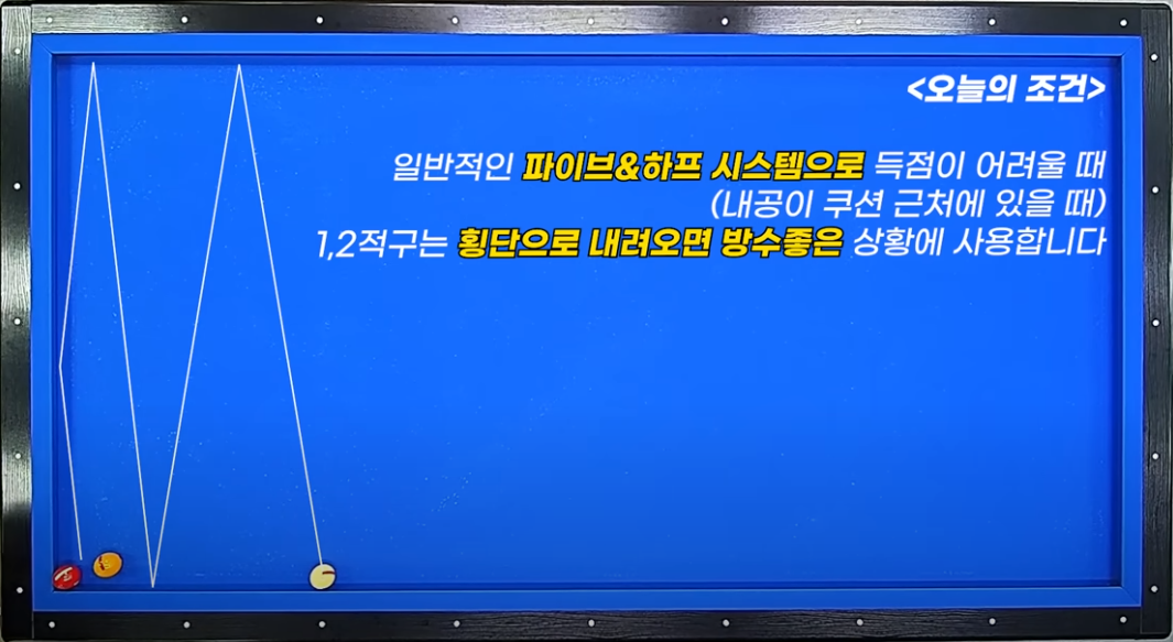 - 큐볼도 장쿠션 근방에 배치되어 있고 파이브앤하프시스탬 적용이 곤란하다고 생각될 때