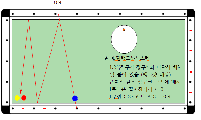 - 1쿠션지점 : 3포인트 × 3 = 0.9