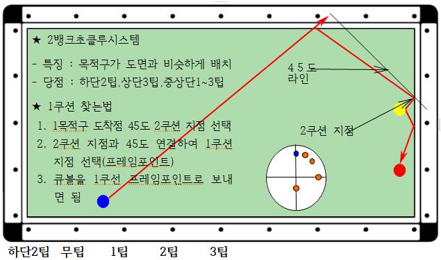 - 1목적구 45도 지점 2쿠션 지점 선택